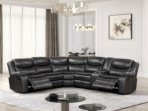 FOA WestEarl Gray Sectional, 119"L X 78"W X 34 1/2"H, 232lbs. It's hard to ignore the refreshing appeal of gray fabrics. They blend into any environment an...