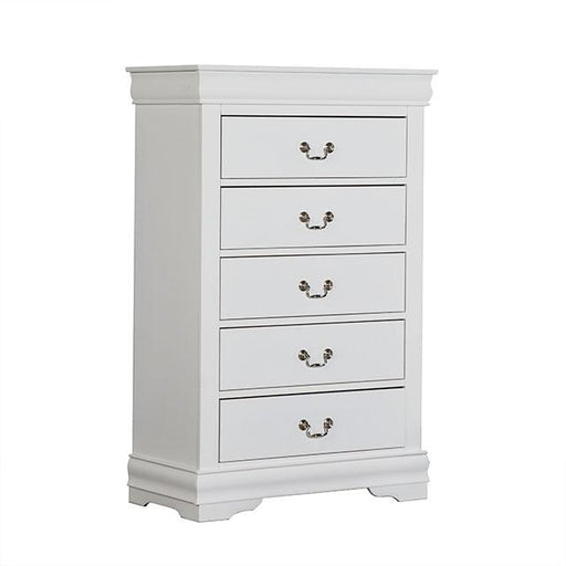 FOA WestThis compact five-drawer chest is perfect for those with smaller living spaces. Available in white, red, or espresso finish.