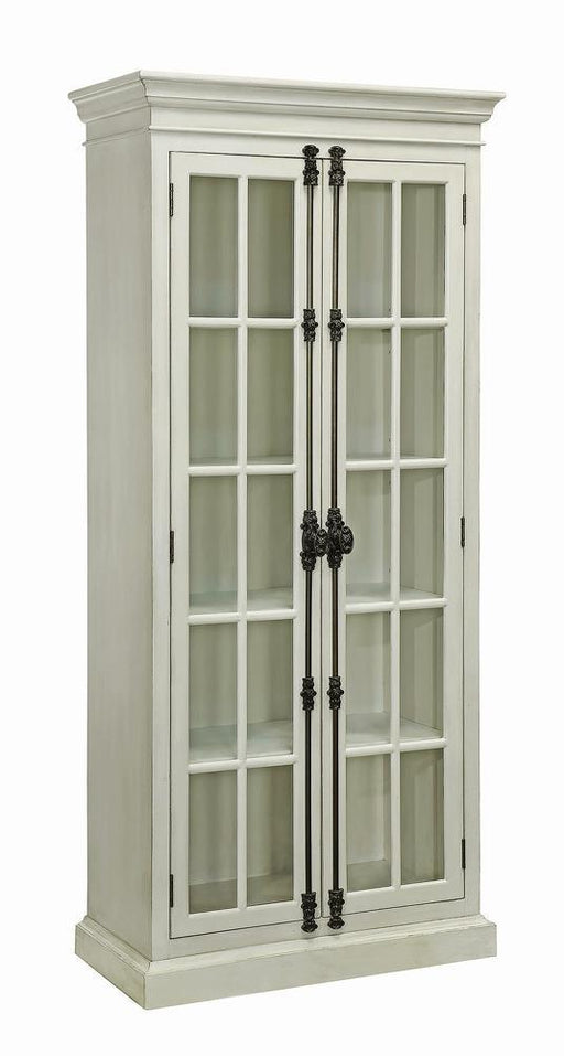 Coaster Z2 PremiumEnvision a dining room graced by this tall dining cabinet, a vitrine that radiates charm with its distressed white finish, whispering tales of time...