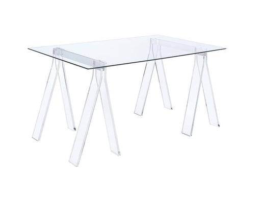 Coaster Z2 PremiumEnjoy an airy workspace with this 59-inch writing desk, pairing a sleek acrylic sawhorse base and a clear tempered glass top. Heavy gauge steel sup...