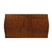 This gorgeous dining table features a rich cherry wood finish table top and molded trim, resting upon sturdy black tapered legs. The side chairs showcase contoured wood seats and slatted backs.